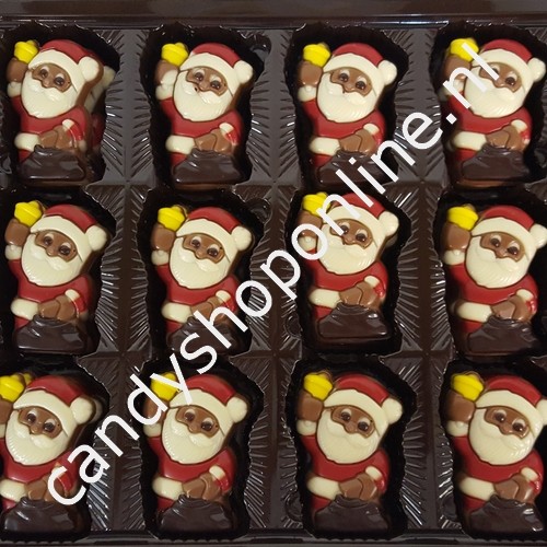 Ingrediënten: suiker, cacaoboter, volle melkpoeder (lactose, melkeiwit), cacaomassa, weipoeder (lactose, melkeiwit), emulgator: sojalecithine, specerijen, natuurlijke vanillearoma, kleurstoffen: E100, E120, E141, E160e, cacaobestanddelen: melkchocolade 30%, pure 50%, wit 25%.