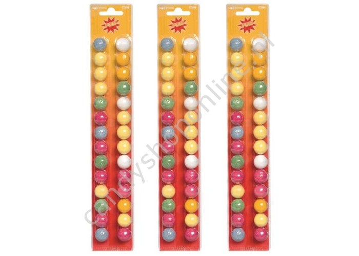 Ingrediënten: suiker, gombasis, glucosestroop, glansmiddelen (E903, E904 en E905), kleurstoffen (E120, E133, E141, E160a, E160c en E171), aroma's.